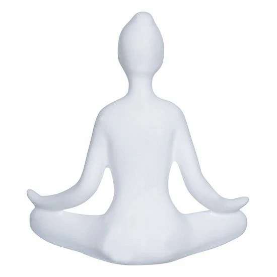 - This handcrafted ornamental figurine features a woman, deep in thought while in a cross-legged sitting position. The whole piece is given a clean, white matte finish, and will make a suitable display for your office, living room, yoga studio, or bedroom.
