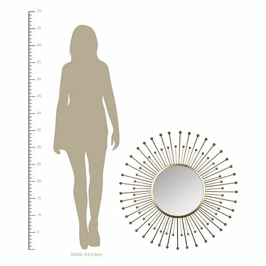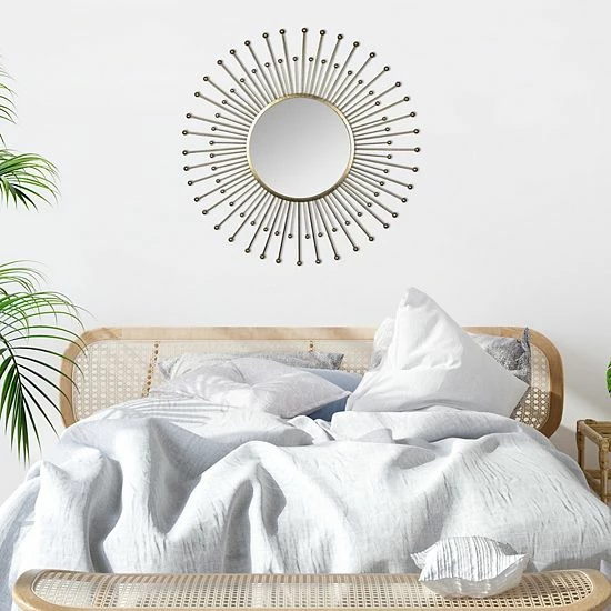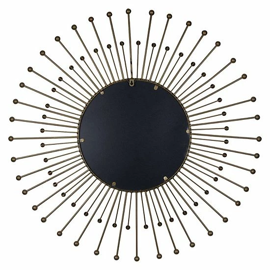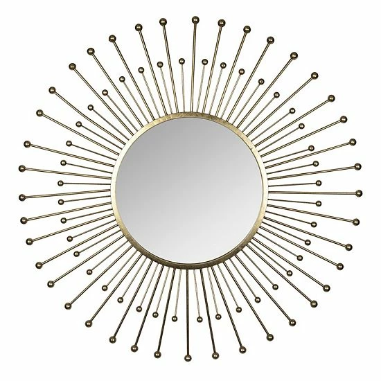 - An excellent statement piece, this elegant mirror offers your house or apartment a major decorative boost. Watch your space transform with the captivating golden spokes surrounding the mirror. It’s sure to add character to an otherwise dull space.
