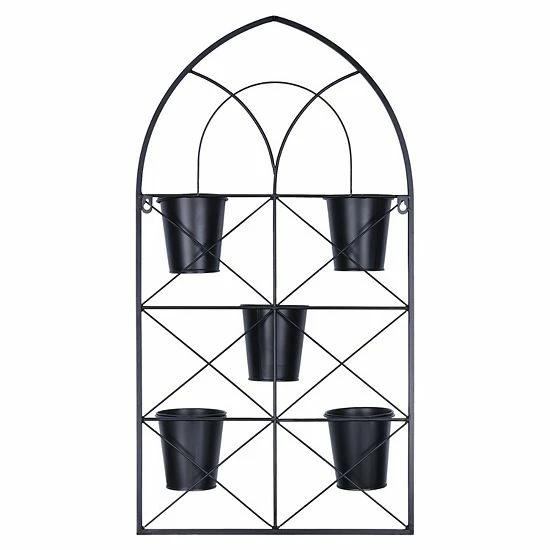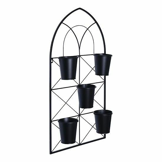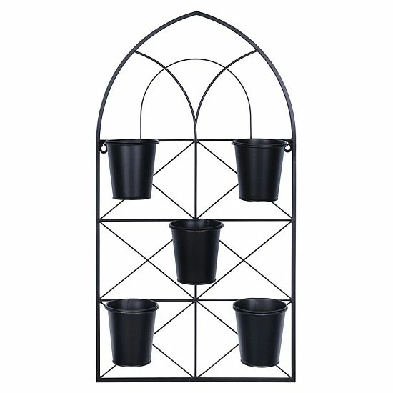 - Create an elegant aura in your indoor space with this planter set. It features 5 removable plant containers, held together by an arched frame. The whole piece is given a matte black finish, which will complement existing classic home decor.