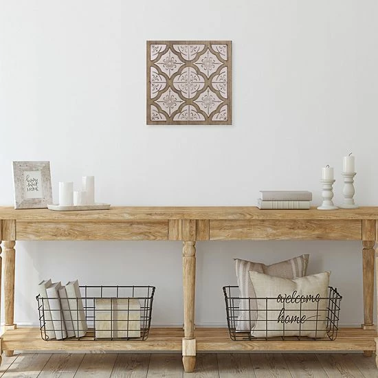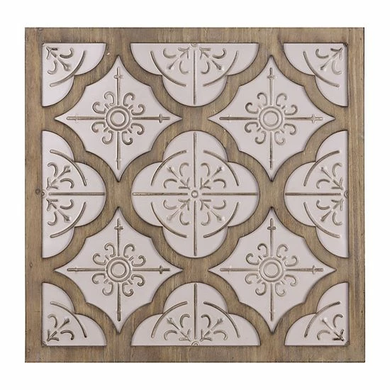 Easily redefine the look of your space with this stylish Stratton Home Decor Farmhouse Pink Quatrefoil Metal and Wood Square Medallion Wall Decor.