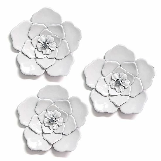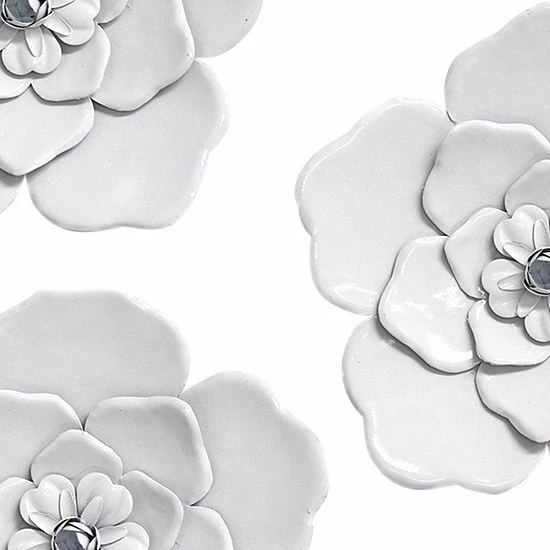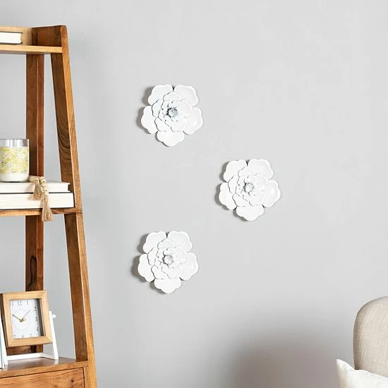 Add shabby chic style to your living space with this Stratton Home Decor white flower wall decor set.