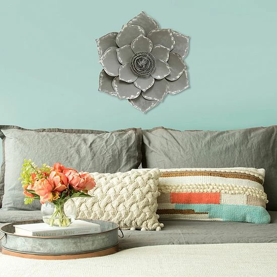 Accent your rustic or shabby chic decorations with this Stratton Home Decor metal lotus flower wall decor.