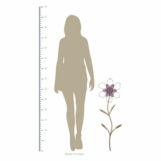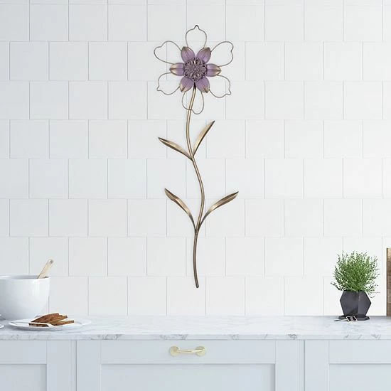- Watch your home come alive with this handcrafted art decor. It features a stunning metal flower with multiple textured layers and a radiant pink center with a distressed finish. Its stem is painted gold and gives off a smooth, shiny glow.