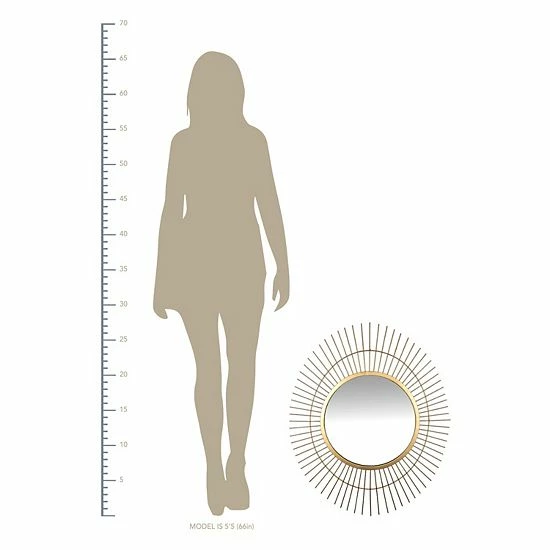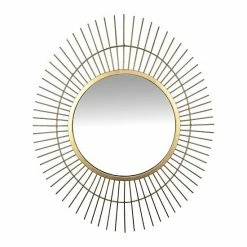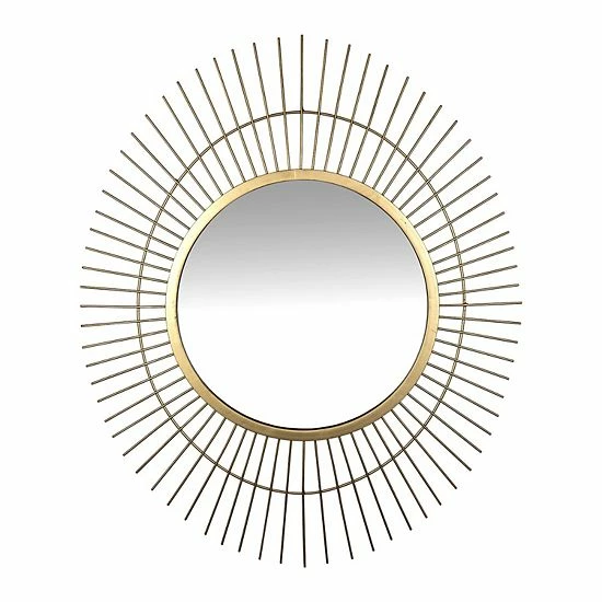 - Liven up your home with this handcrafted wall piece. This wall mirror features a round center that is surrounded by decorative spokes to create a unique oval shape. The whole piece has a matte gold finish that makes it stand out in your space.