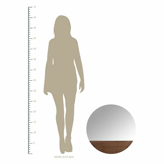 - Make any room look brighter with this round mirror. It features a simple round frame, which is given a wooden accent with a stained finish. The wooden part also shows-off wood grain and knot details, which will make the mirror stand out in any room.