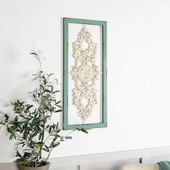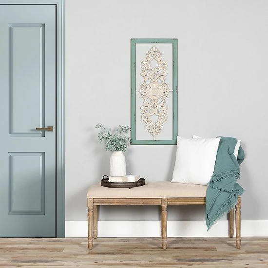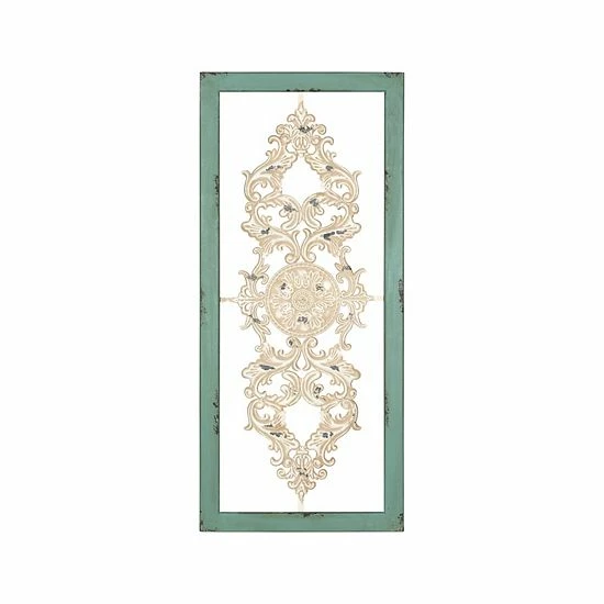 Mix contemporary design and vintage appeal into your home decor with this Stratton Home Decor scroll panel wall decor. In distressed teal, white.