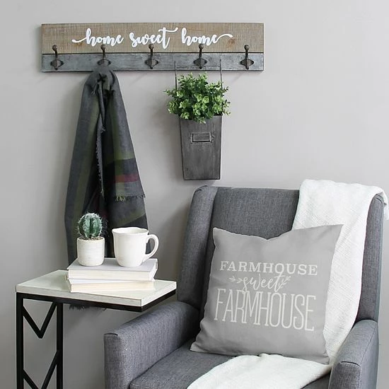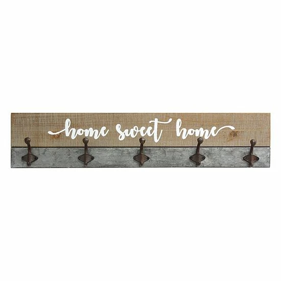 Add the final touch to your home’s farmhouse look with this Stratton Home Decor “home sweet home” 5-hook wall decor.