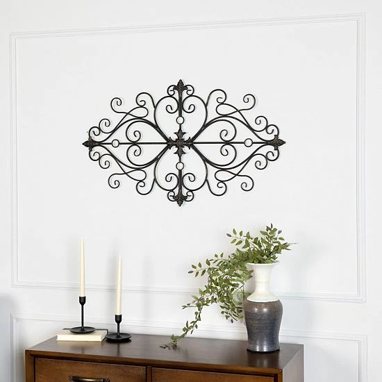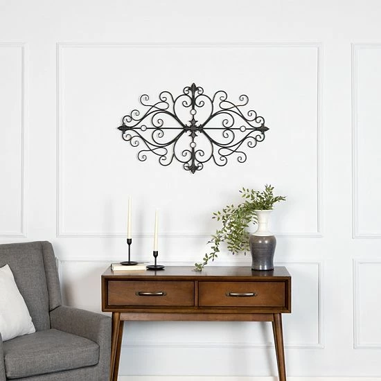 Add a charming touch of vintage design to your home decor with this Stratton Home Decor traditional scroll wall decor. In black.