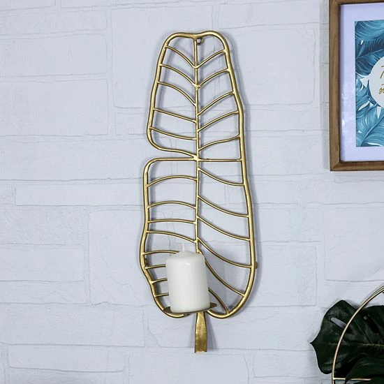 - Add a touch of luxury to your home with this decorative sconce that glimmers with its shiny gold finish. Its eye-catching tropical design, with a gold leaf and angled stem details, adds a refine and classy vibe to your modern or contemporary home.