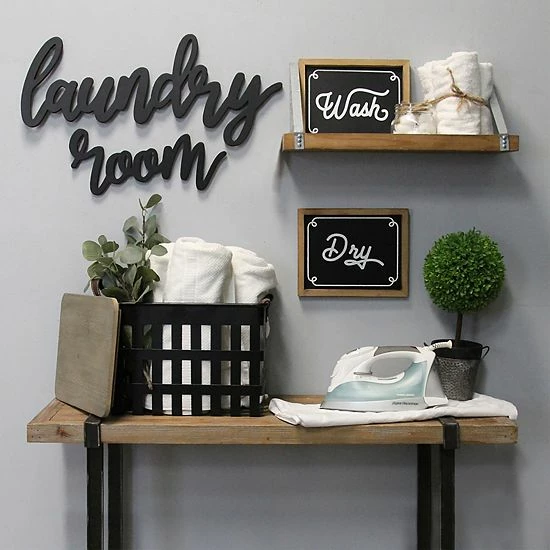 Add a statement to your wall with this Stratton Home Decor Wood Laundry Room Script Wall Decor.